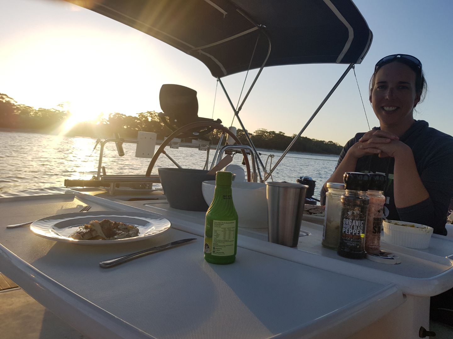 We ran the generator once to charge the batteries, and ran the watermaker twice to fill our tanks with drinking water. I did laundry twice at the laundromat in Vincentia and I had two proper hot showers off the boat (unlimited water, so total luxury!). We hiked or biked on seven days and I took the stand-up paddle board out three times. We emptied the holding tank on three occasions, and my diary notes that ten days were ‘slow, quiet, stayed on boat.’ Although we did get take-away occasionally, we mostly cooked on the boat, so the closure of pubs, restaurants and cafes has probably saved us a fair bit of money.