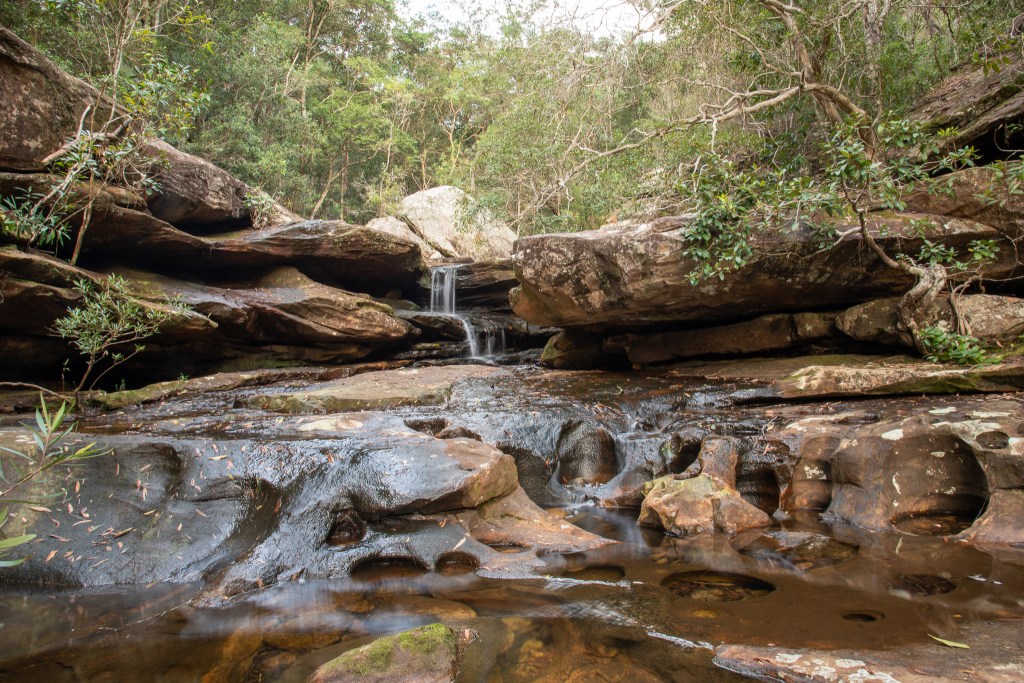 At Houseboat Bay in Cowan Creek we took the tender across to the boat ramp in Appletree Bay and hiked from there to Mt Ku-Ring-Gai through the Mt Ku-Ring-Gai Chase National Park. A beautiful, steep walk, through quintessential Australian bush, with gorgeous wildflowers scattered about. At first the colour palette appears to be just greens and browns, but then you notice a brightly coloured flower and all of a sudden, you are seeing delicate pops of colour everywhere. Red, orange, yellow, white and lots of pink and purple.