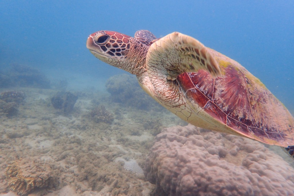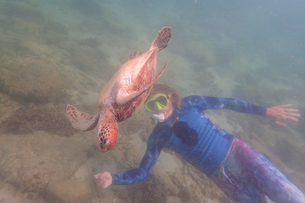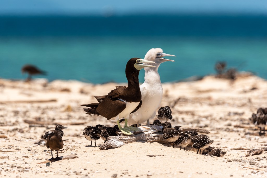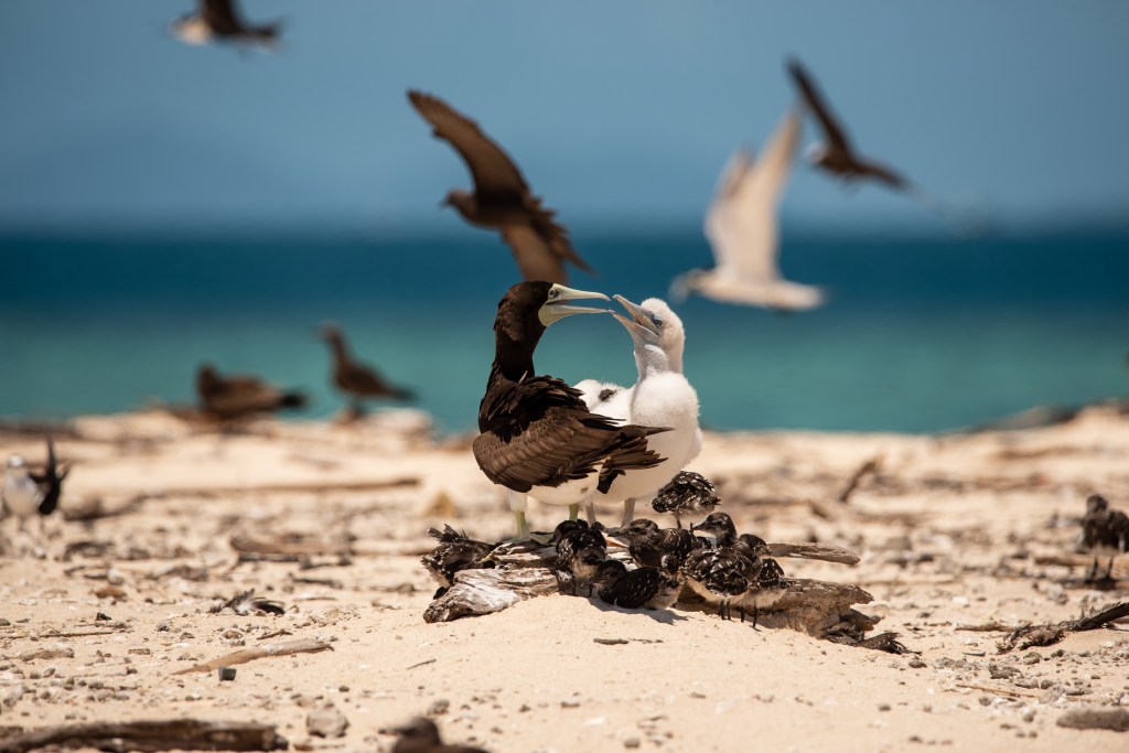 Michaelmas Cay, a small coral cay north of Cairns, and the nearby Fitzroy Island became our go-to places to take guests. Michaelmas Cay was a three to four hour trip out and boasted some of the clearest water, most amazing coral and spectacular tropical fish, as well as lots of green sea turtles. It was also a protected breeding ground for an incredible array of different birds. A similar distance in the opposite direction, Fitzroy Island was also home to lots of sea turtles as well as some beautiful coral bommies. At Fitzroy there was also the island with facilities, including the possibility of the ferry back to Cairns. When we took visitors out for overnight trips we usually went to Fitzroy Island first, just in case they were seasick and needed to either stay on land or return via the ferry.