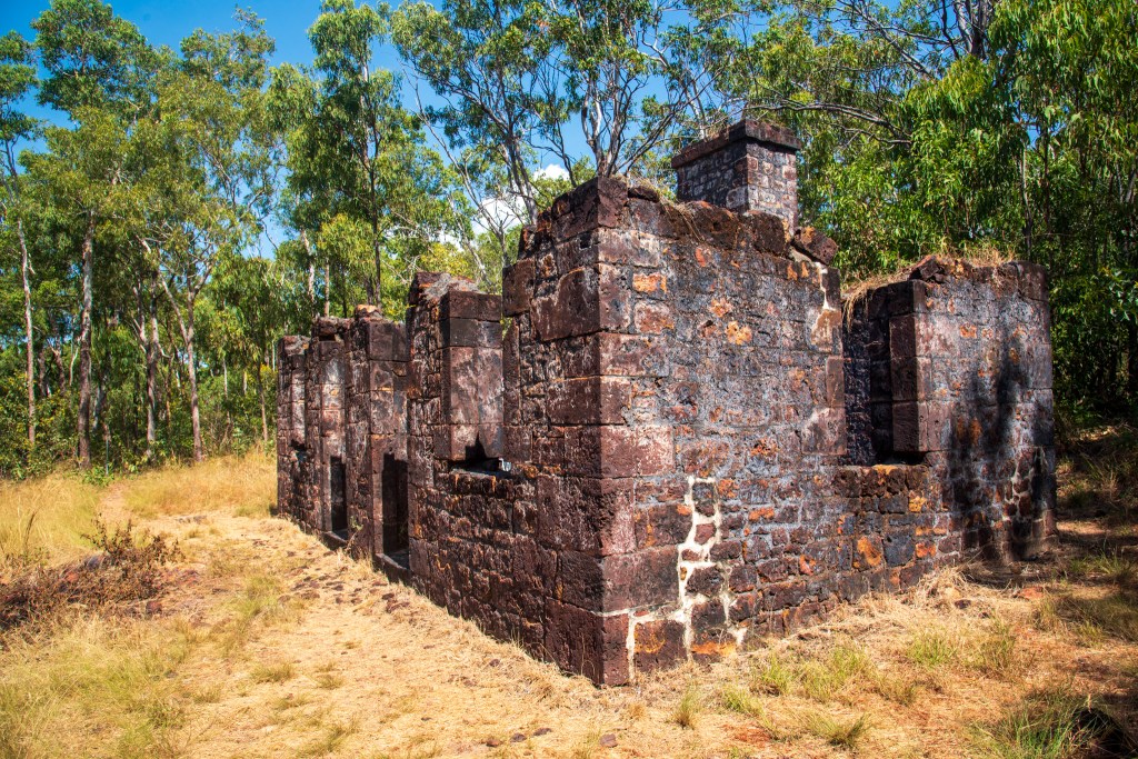 Motoring the short distance over to Minto Head, we anchored and went ashore to walk through the ruins of Victoria Settlement. The settlement was founded in 1838 as the third attempt by the British to settle on the northern coast of Australia. The pioneers spent 11 years trying to establish it before eventually giving in and abandoning it. By all accounts, life was incredibly tough here and at times most of the small community was in the hospital We wandered through the ruins of several buildings and around the little cemetery with its hand carved gravestones. A beautiful place, but so isolated and remote, a harsh landscape for those pioneers.
