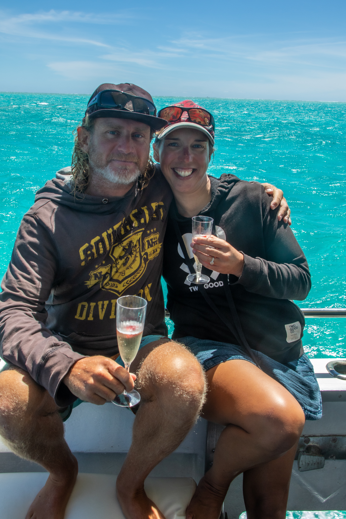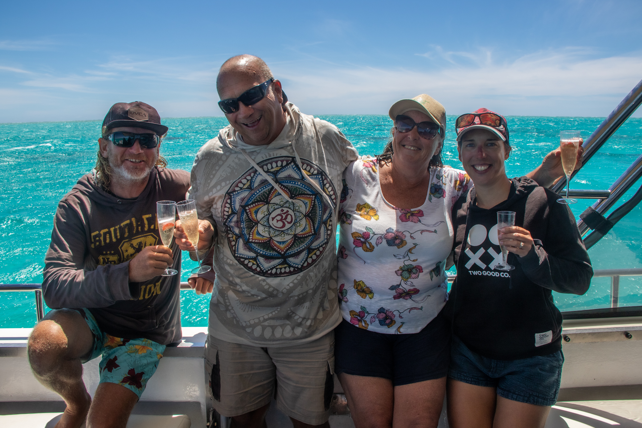 The afternoon continued into dinner and more drinks up at ‘The Pub’ as Sarah declared there was no way the Mums could possibly cook now. By the time Jase dropped us back at Maud’s Landing and Brian came out in his tender to pick us up, we were pretty happy. Matt charged out into the water to meet Brian and before I knew it we were both wading in waist deep water, and laughing as we attempted to clamber into the tender.