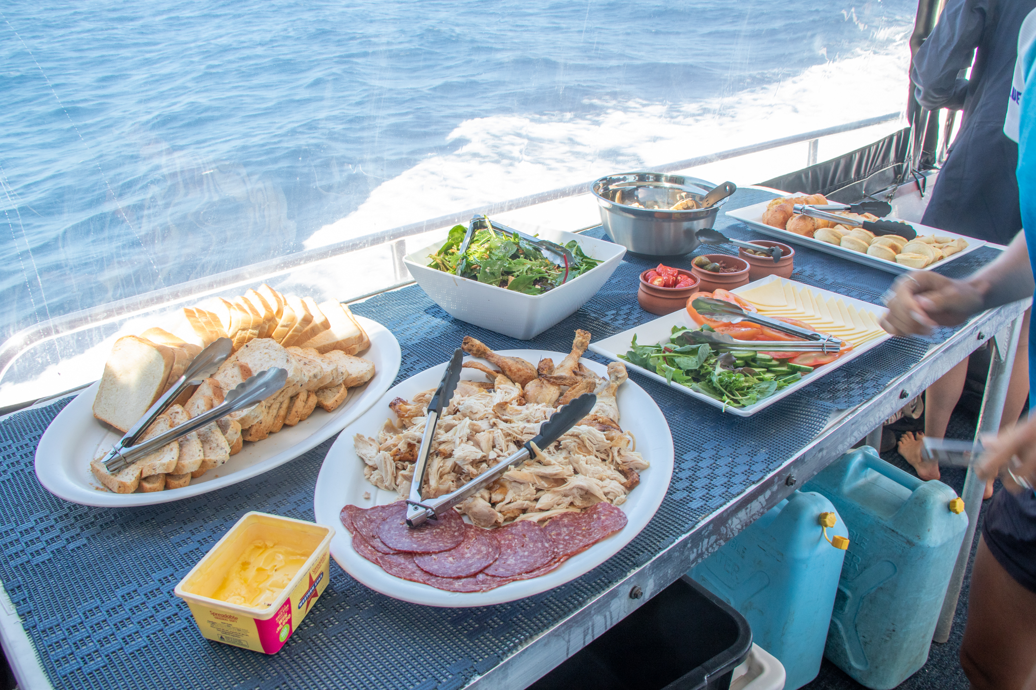 The weather was beautiful and the water was lovely and calm as we motored around the reef, with Jason directing us to possible manta ray sites. Unfortunately we didn’t manage to find any, but we did all have a snorkel over some coral and a yummy BBQ for lunch. It was a nice day out, very chilled and relaxed, and lovely to spend time with our new friends. We look forward to seeing them all again when we reach Esperance in a few months.