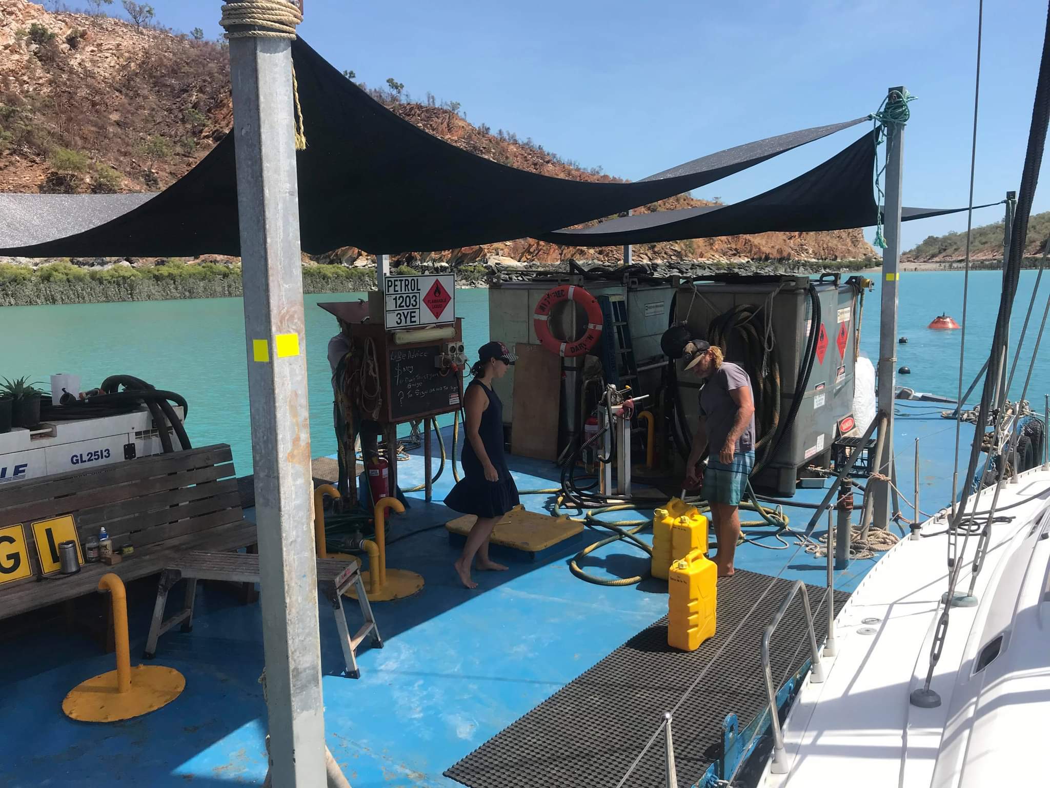 We spent four nights anchored in Hampton Harbour at the little mining town of Dampier. Over the next few days we rested, caught up on sleep and stretched our legs, walking all over the tiny town. We made use of the Sailing Club facilities; luxuriating in a proper shower and topping up our water tank with jerries. We treated ourselves to dinner out at the Mermaid Hotel, had a breakfast at SOAK café and when Brian and Sandra arrived, we celebrated their anniversary with them at the lovely Hampton Harbour Boat and Sailing Club overlooking the bay.