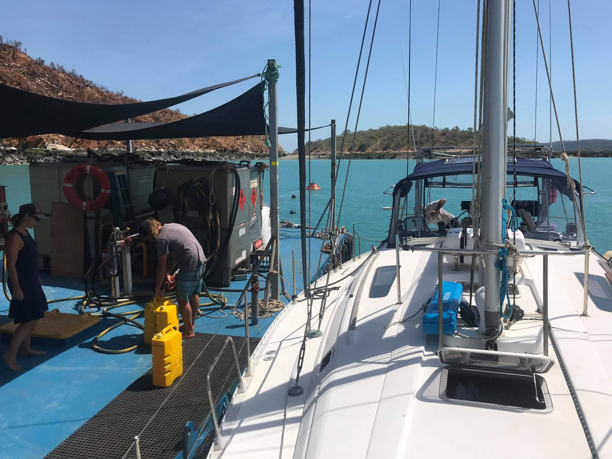 Matt came up with a plan that if he could be safely transferred onto Beaujolais, then he would sail the boat back towards Dampier for Karl, hopefully to meet a rescue boat along the way, while I followed in Cool Change. This of course, would be dependent on being able to get Matt transferred safely across. Matt and Brian conferred on the radio and agreed that trying this course first may be the safest option, and so Brian agreed to keep heading for Beaujolais and to stand off until we arrived and Matt could assess the conditions.